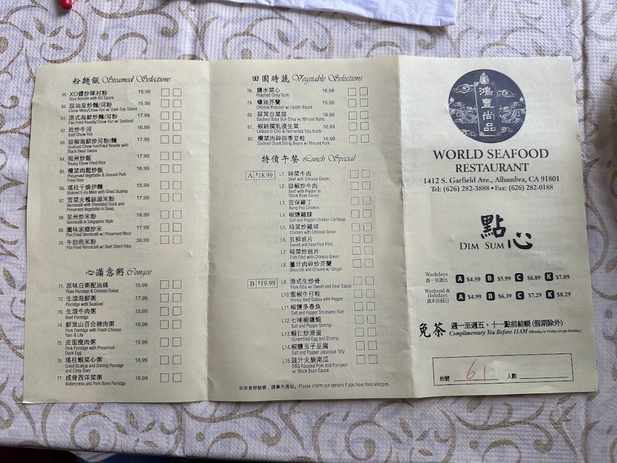 With a menu that balances traditional dishes and modern interpretations, infused with the warmth of excellent service, World Seafood Restaurant stands as a beacon for food lovers seeking an authentic Chinese dining experience in the heart of Alhambra. The restaurant’s dedication to quality and authenticity is evident from the way they treat each dish, ensuring that every bite is memorable.