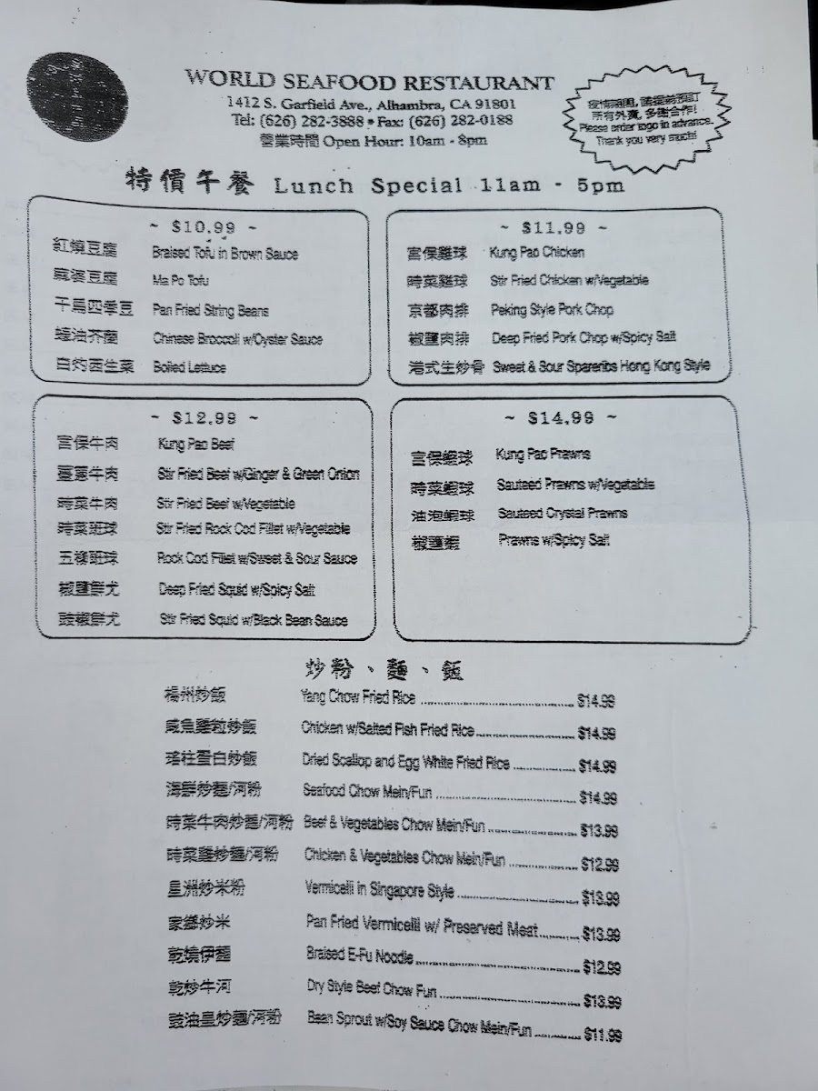 If you're in Alhambra, CA, and have a craving for authentically delightful Chinese cuisine, look no further than World Seafood Restaurant, located at 1412 S Garfield Ave. This gem offers a vibrant mix of traditional and modern Chinese dishes, promising an unforgettable dining experience.